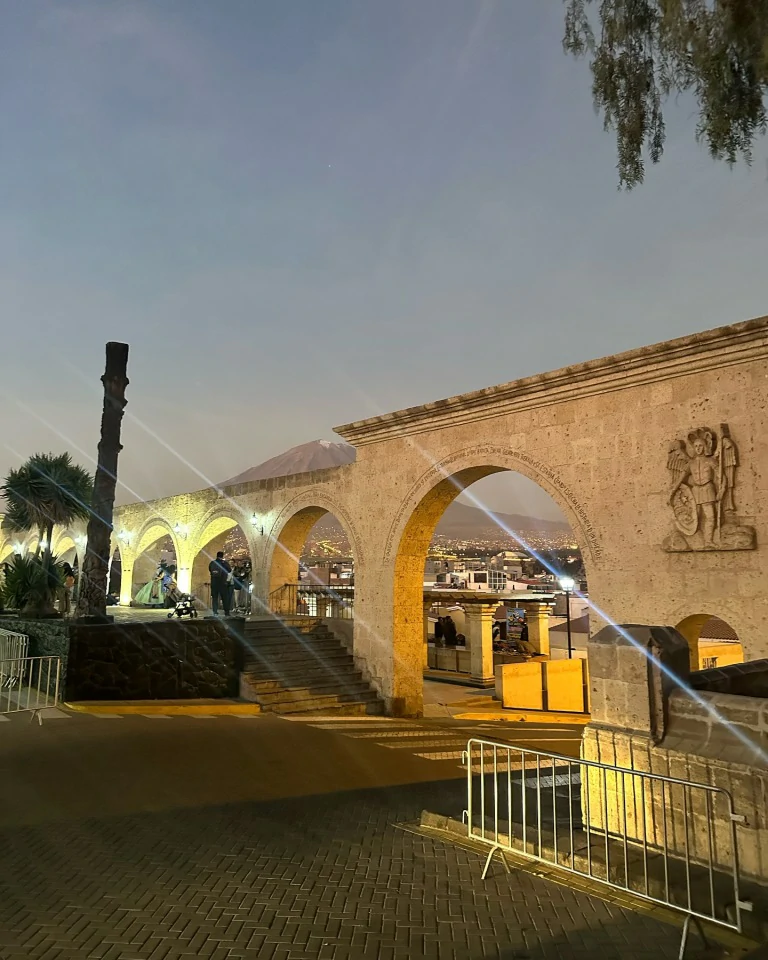El imponente volcán Misti vigila desde las alturas, creando un paisaje inconfundible que inspira a viajeros y fotógrafos de todo el mundo.